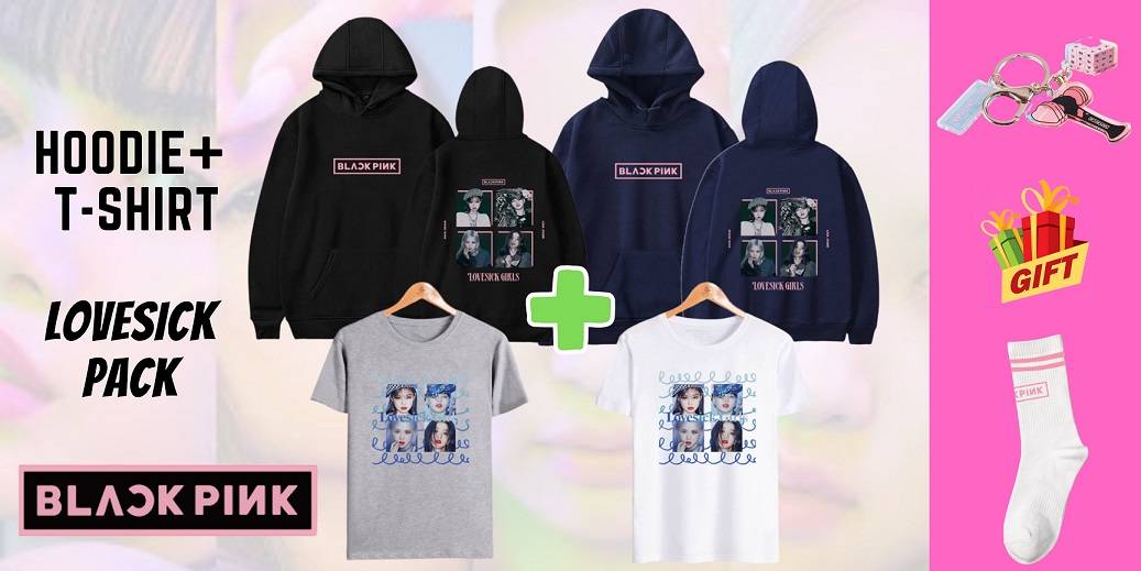 Blackpink Lovesick Pack: Hoodie + T-Shirt + FREE Socks & Keychain